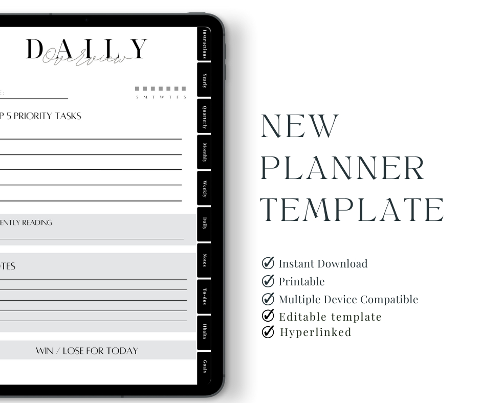 With the Ultimate Planner 2024, you can bid farewell to cluttered desks and endless paper waste. This digital planner can be easily accessed and utilized on your favorite device, such as your tablet or smartphone, making it portable and always within reach. Say goodbye to bulky planners and hello to a sleek, minimalist solution that fits right in your pocket!